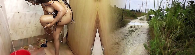 07:30अच्छी तरह से खड़ी काले बालों वाली लड़की कैमरे पर एक शॉवर ले जाता है