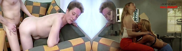 Insatiable and cock loving brown-haired milf fucked on the couch
