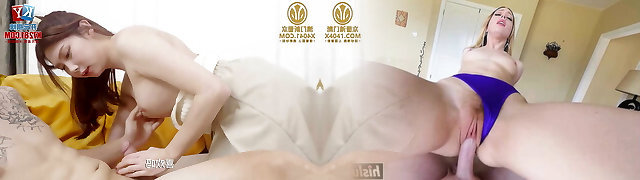 3 COCKS on ONE HOT Asian TEEN GANGBANG