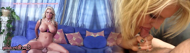 Blonde honey with gigant tits pleasing her man