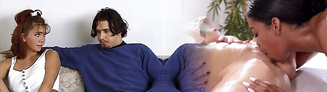 Young biotch likes to have fuck-fest with two men with big all-natural boobs in scene 01 from the movie Pig television